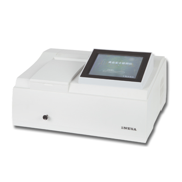,酶催化神經(jīng)傳導代謝產(chǎn)物(乙酰膽堿)水解,其水解產(chǎn)物與顯色劑反應(yīng),產(chǎn)生黃色物質(zhì),用分光光度計測定412nm下吸光度隨時間的變化值,計算出抑制率,通過抑制率可以判斷出樣品中是否含有有機磷或氨基甲酸酯類農(nóng)藥的殘留。可以實現(xiàn)有機磷及氨基甲酸酯類農(nóng)藥殘留量的現(xiàn)場快速檢測。